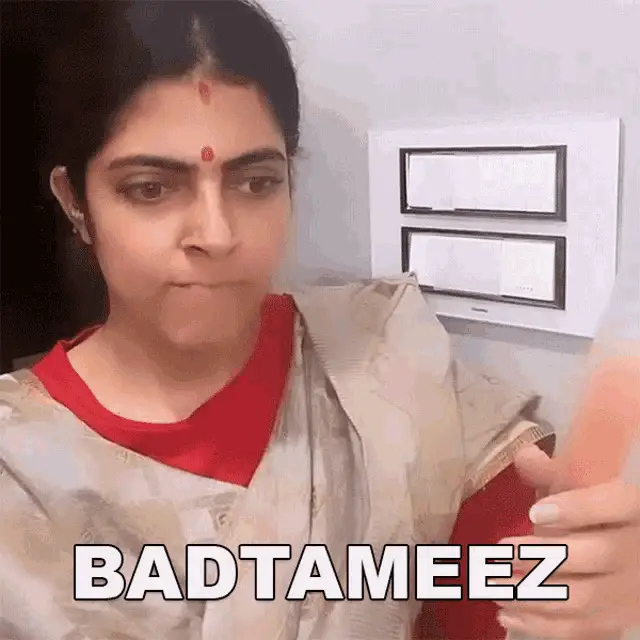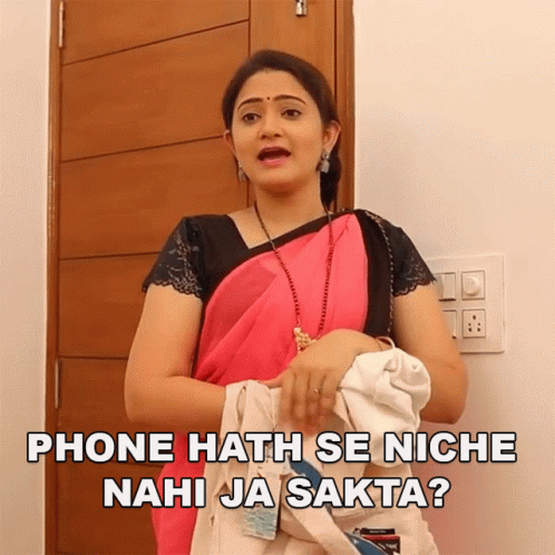 Sibbu Giri questions why the phone can't be put down, while holding clothes and wearing a pink saree.