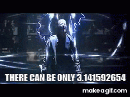 A man, reminiscent of Highlander's Connor MacLeod, experiences the Quickening with lightning, declaring "There can be only 3.141592654".
