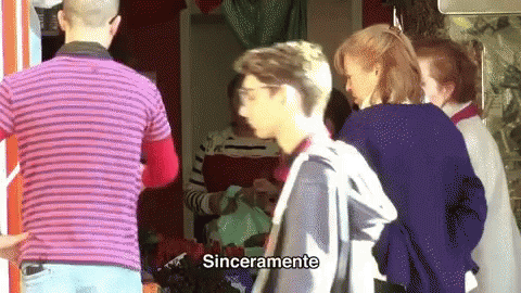 Pierre Zago makes a hand gesture as the word "Sinceramente" appears, surrounded by a group of people.