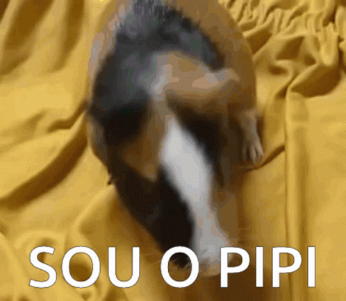 A cute guinea pig, possibly named Pilantro or Pipi, with the text 'Sou O Pipi' on a yellow blanket.