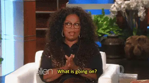 Oprah Winfrey with a surprised, wide-eyed expression, wearing a black jacket and white collar.