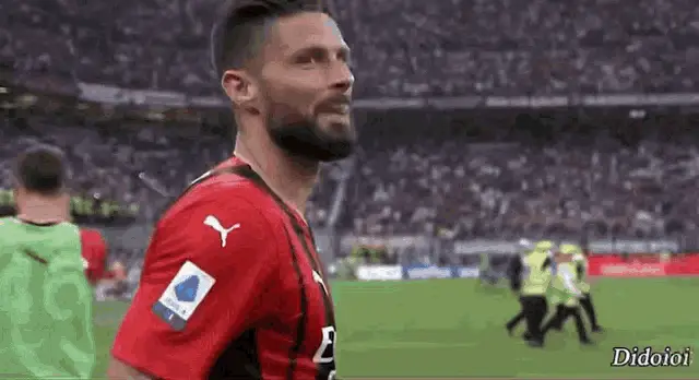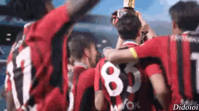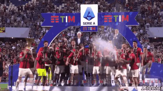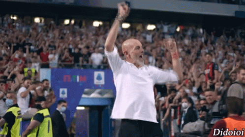 Stefano Pioli, coach of AC Milan, celebrates winning the Scudetto with fans and receives a medal.