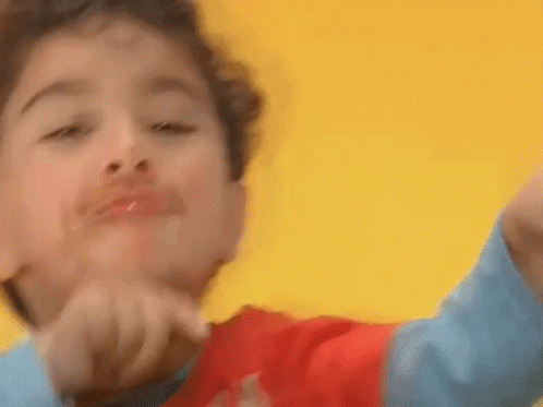 A young boy, Pistke, with cocoa on his face, performs a happy dance.