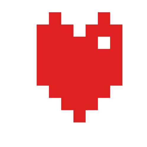 A charming red pixel heart with a white square center, animated against a clean white background.