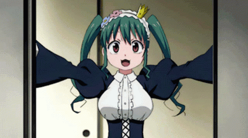Ginko from Planet With, an anime girl with green pigtails and a crown, winks and salutes.