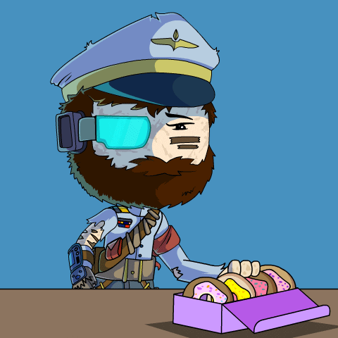 A Planet Xolo commander from Villagers of Xolo is confused about his missing donut, looking for it after holding one.