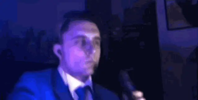Сергей Старых reacts with displeasure to the word 'PAID' on screen, turning away.