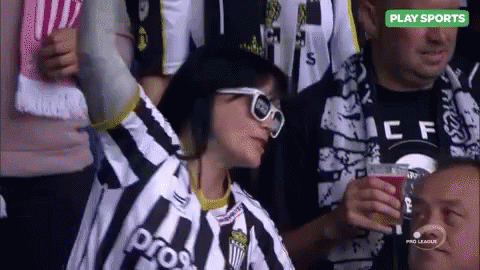 A passionate Jupiler Pro League fan in a Charleroi jersey celebrates enthusiastically at a football match.