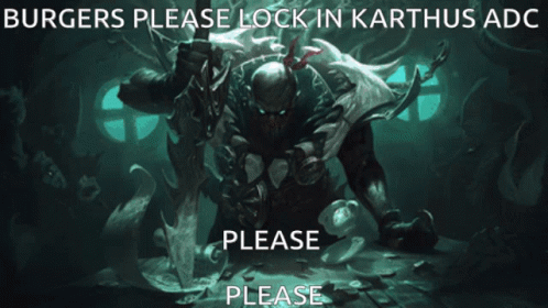Yb Marsalla and Marsel Sama plead for 'Burgers' to lock in Karthus ADC, as shown in a dramatic image.