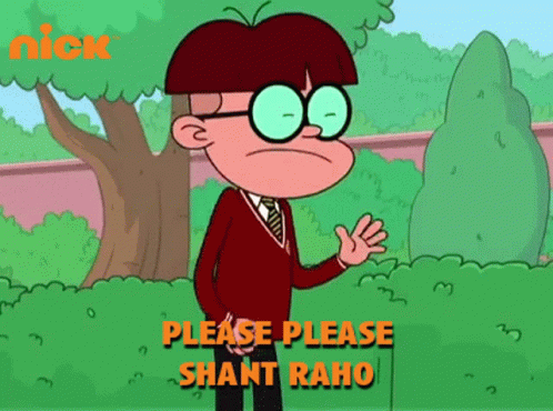 Laxman1 from Golmaal Junior pleading 'Please Please Shant Raho' with an annoyed expression.