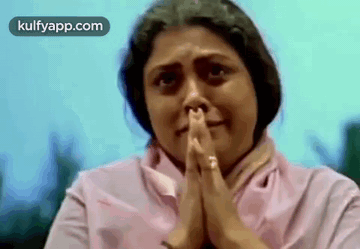 An emotional woman from the film Rajamanikyam is seen crying and praying with folded hands, expressing deep distress.