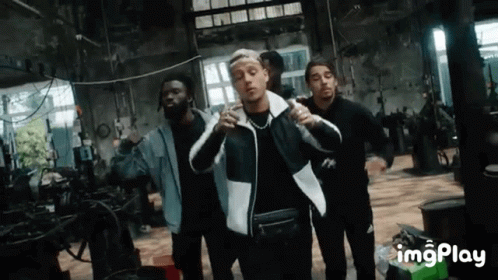 PLK performs 'Un Peu De Haine' with two other men in an industrial setting.