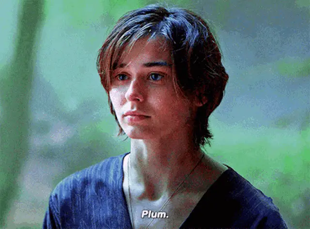 A vibrant display of plums with 'Plumsicle' stickers, red star confetti, and chocolate candies for 4th of July.