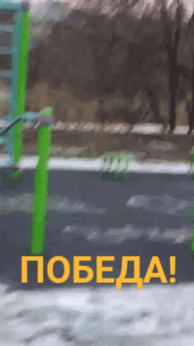 Ilya, Matvey, and Stas celebrate victory on a snowy playground with 'VICTORY!' text.