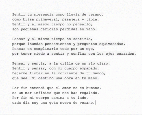 A beautiful Spanish poem about love, feeling, and destiny, presented on a white background.