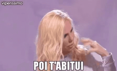 Italian TV personality Ilary Blasi makes a face while saying 'Poi T'Abitui' (Then you get used to it).