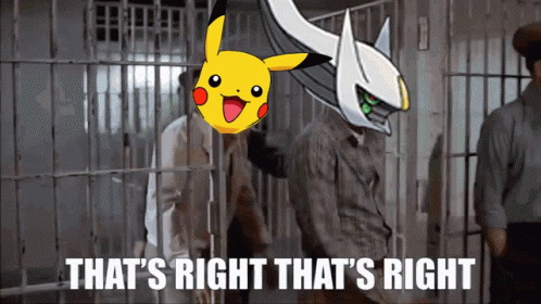 Pikachu and Arceus, two iconic Pokémon, are depicted in jail, declaring 'That's Right, We Bad'.