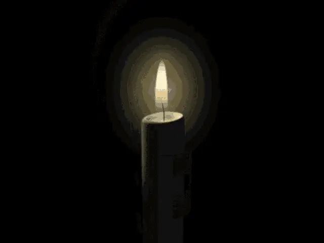 Cartoon red-headed woman applies face powder with a puff while sitting at a table.