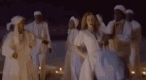 An energetic Pomba Gira dance party with people in white robes performing ritualistic moves at night.