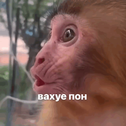 A monkey with a surprised expression, captioned 'vakhue pon'. Its mouth is slightly open and eyes are wide.