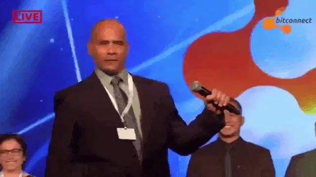 Caujuan Mayo issues a 'Ponzi Alert!' while wearing sunglasses and a cap, quickly ducking out of frame in a dramatic fashion.