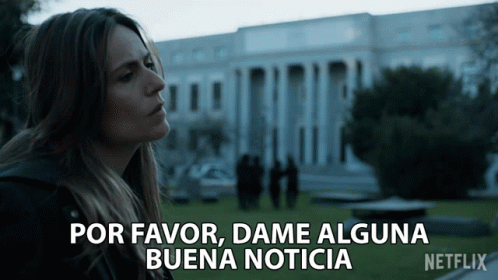 Raquel Murillo from La Casa de Papel pleads for good news, with the Netflix logo visible in the scene.