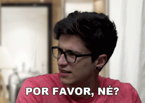 A man from Drelacionamentos, wearing glasses and a red shirt, says 'Por Favor Né?' with a questioning expression.
