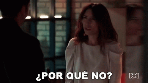 Ana Maria Medina as Miranda asks 'Why not?' to a man in a dark room, from the telenovela 'Pa Quererte'.