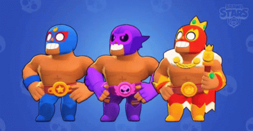 El Primo, El Rudo Primo, and El Rey Primo from Brawl Stars strike a proud pose in this vibrant trio display.