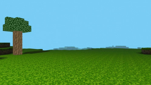 A computer-generated scene featuring a grassy field, a tree, and the words 'POSHEL NAHUI' in a blocky style.