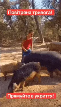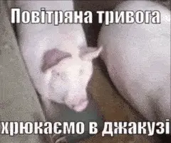 A cute parrot hides inside a trash can, acting as a shelter during an air raid alert.