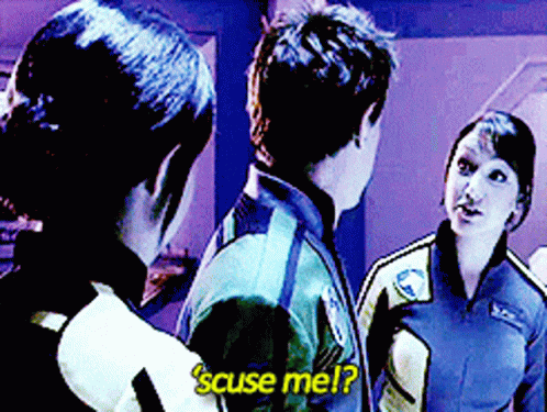 Z Delgado from Power Rangers SPD says 'Excuse me!?' to two other rangers.