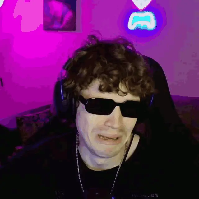 Streamer 5opka with blue hair and headphones expresses indifference, saying 'How much I don't care'.