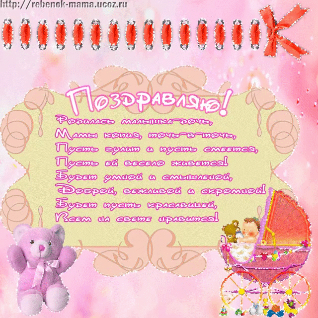«Поздравляю! Родилась малышка - дочь» открытка со стихами
