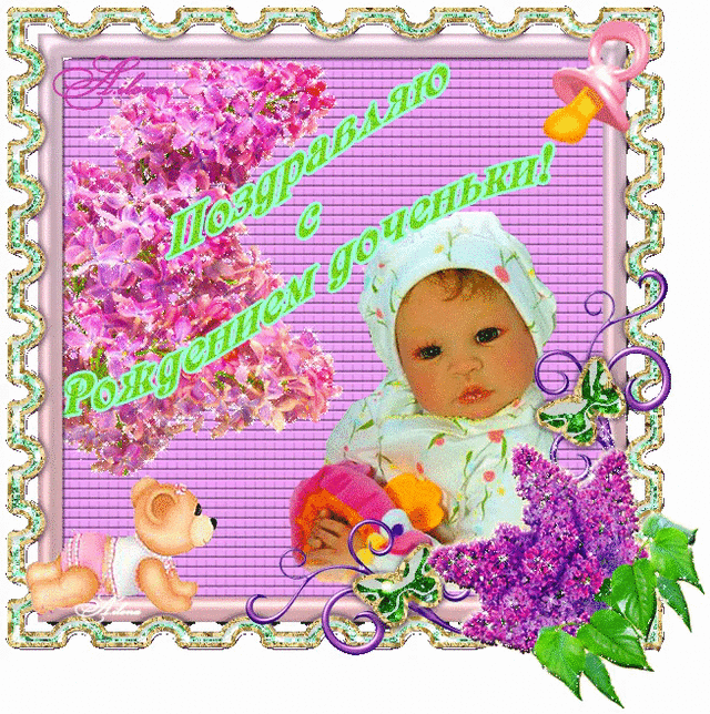 «Поздравляю с рождением доченьки!» анимированная открытка