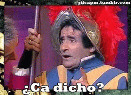 Man in historical costume looking confused, asking 'What did he say?' with the Spanish caption '¿Ca dicho?'