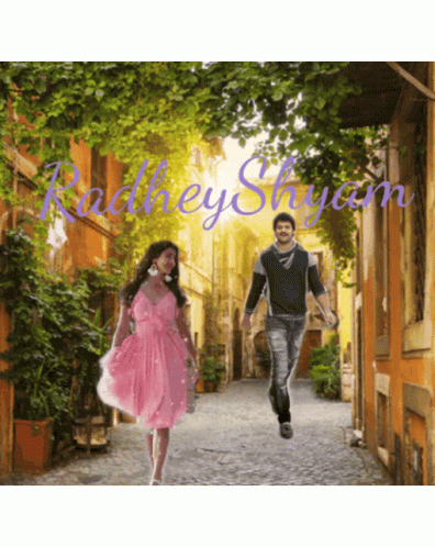 Prabhas and Pooja Hegde in a romantic scene from Radhey Shyam, featuring the lead pair in a charming alleyway.