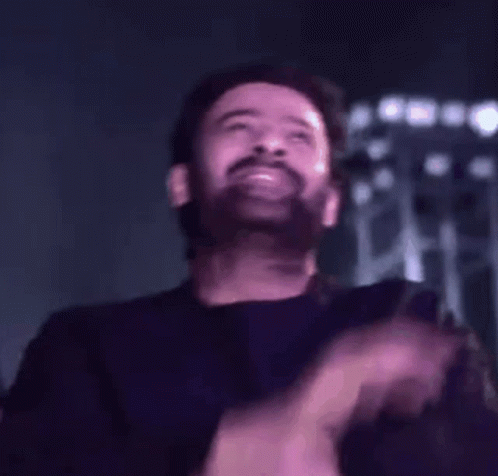 Prabhas, the star of Radhe Shyam, shows an excited and amused reaction, smiling and gesturing.