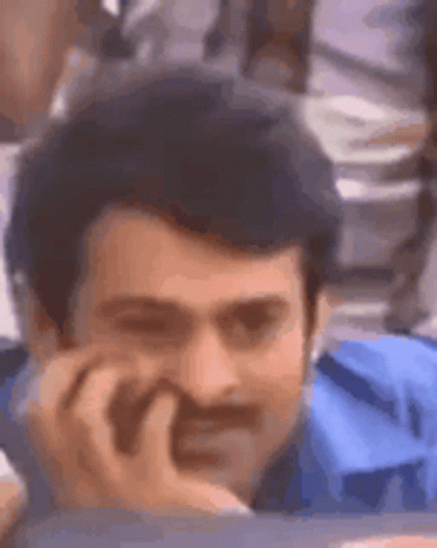 Prabhas from Saaho shows a shocked and surprised expression, touching his nose while looking intently.