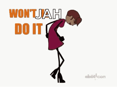 Animated woman performs a praise dance with 'WON'T JAH DO IT' text on screen.