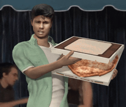 Prashanth presents a heart-shaped pizza in a box, smiling in a green shirt.
