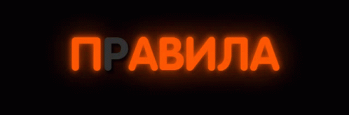 A glowing orange neon sign displays the word 'ПРАВИЛА' (RULES) on a black background, with letters flickering.