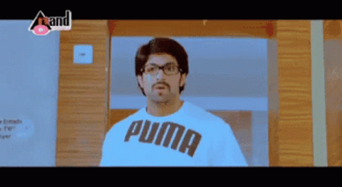 Yash, wearing glasses and a white Puma shirt, makes a praying gesture and points in a hallway.