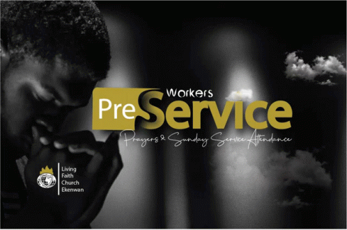 Workers Pre Service poster for Living Faith Church Ekenwan, emphasizing prayers and Sunday service attendance.
