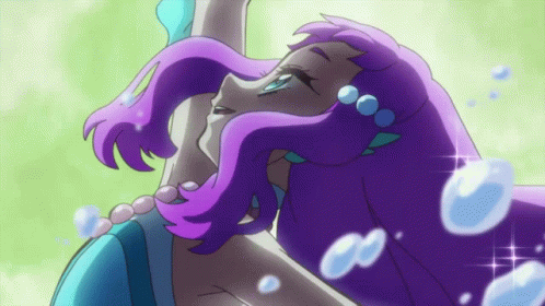 Precure Laura, also known as Cure La Mer, as a mermaid with flowing purple hair and sparkling bubbles.