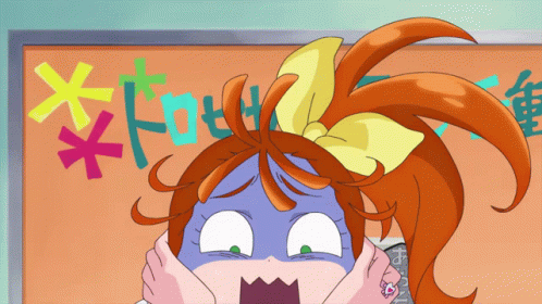 Natsuumi Manatsu, also known as Cure Summer from Tropical-Rouge! Precure, reacts with extreme shock and fear.
