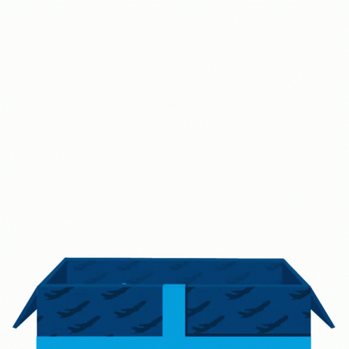 KLM flight attendant joyfully celebrates in a blue box with confetti, full of cheer and excitement.