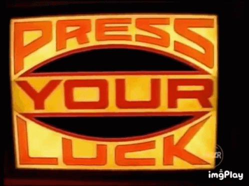 The iconic title card for the classic game show "Press Your Luck" flashes on screen, featuring its distinctive yellow and red logo.