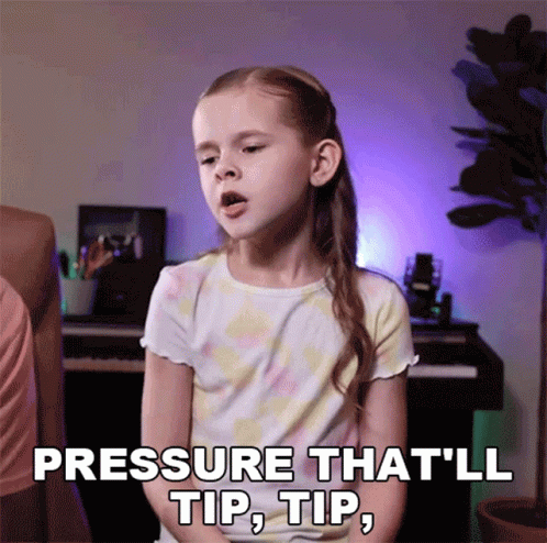 Claire Crosby passionately sings the line 'Pressure that'll tip, tip, tip, tip 'till you just go pop, whoa'.