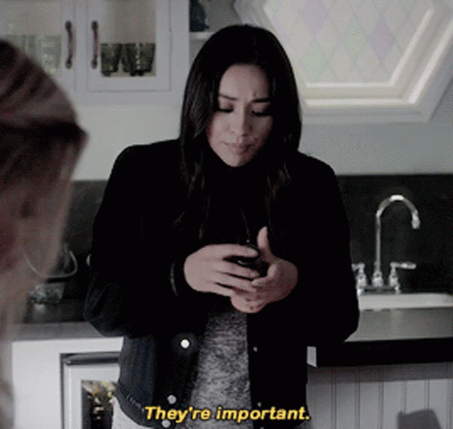 Emily Fields (Shay Mitchell) in Pretty Little Liars, holding an object and saying 'They're important'.